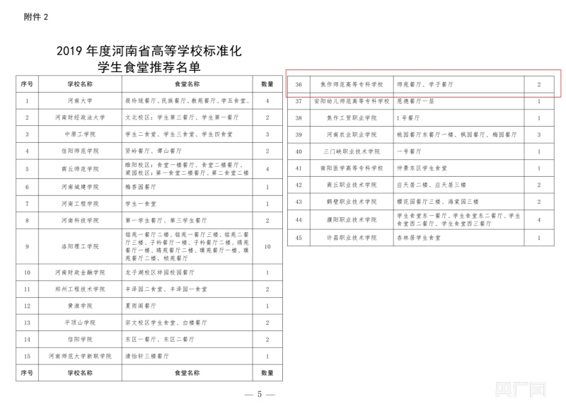 2019年被评选为河南省高等学校标准化学生食堂(央广网发河南省教育厅网站截图)
