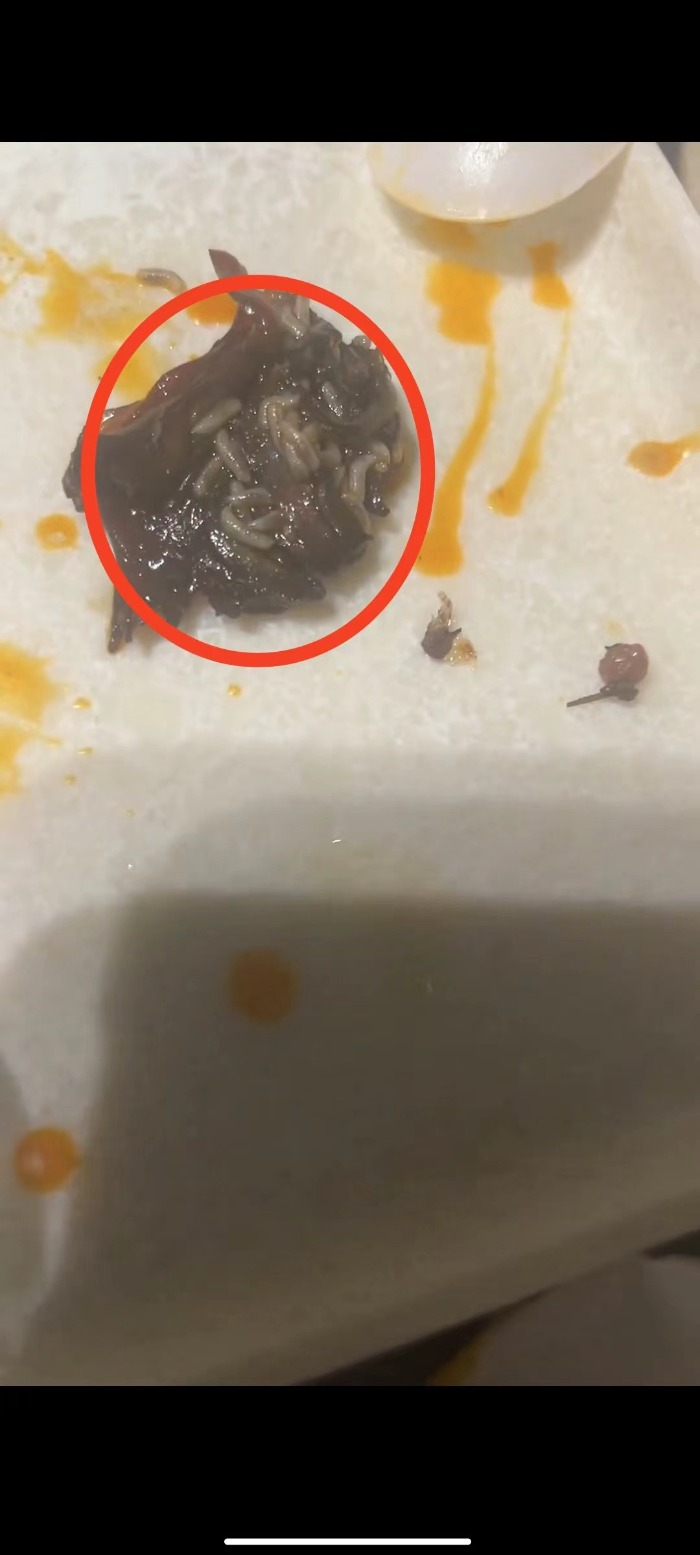去年8月22日,河南三门峡,顾客发视频称在烧烤店吃出蛆虫,怀疑是蘸料里来的。23日,店家表示,他们正在调监控逐帧检查,蘸料是总部塑封包装寄过来的,事发后给顾客道歉免单,赔偿1000元对方退回了,要求去医院检查身体,食药监局正在介入处理。