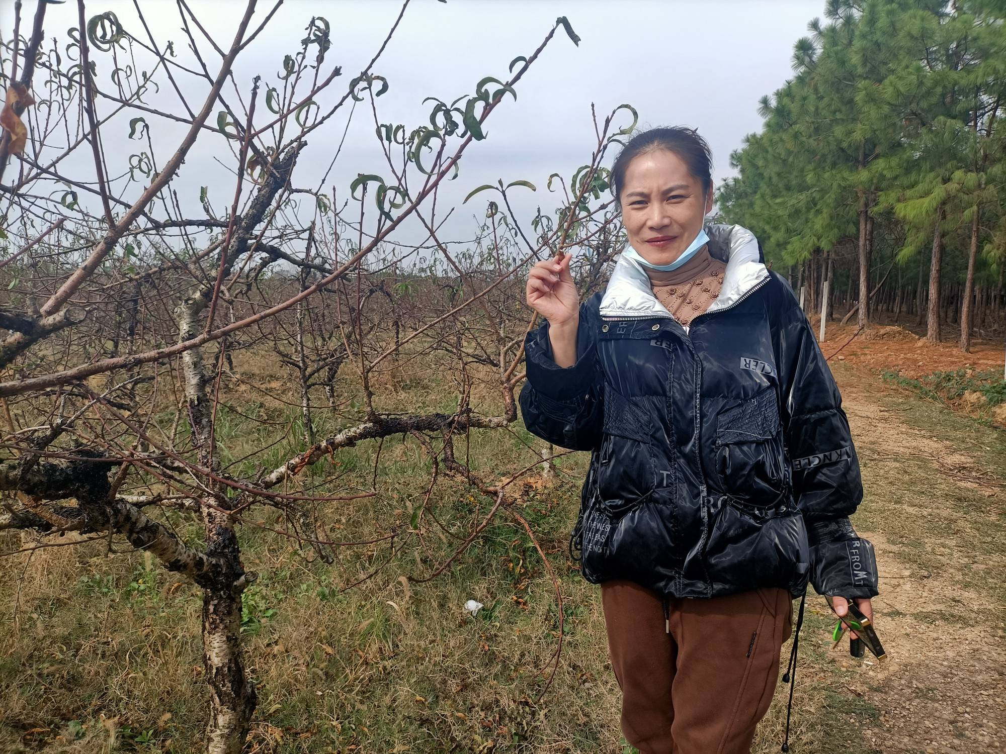 “繁华落尽终是平淡,美丽如雾,难以言说,装点熟悉的风景;又寂寞如湖,静水流深,忧伤了那游弋的鱼儿。”11月9日下午,程波兰在她种植的桃园基地,面对着新媒体采编的镜头,饶有兴致地吟诵了这首词。