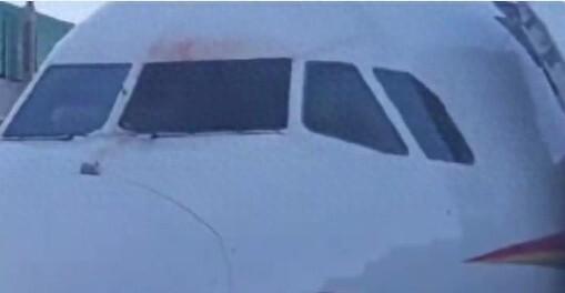 △西藏航空TV9873落地后驾驶舱窗口外侧有血迹