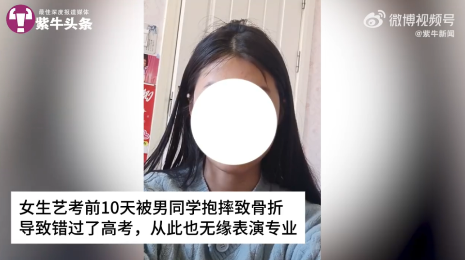 近日,一名女孩发帖称自己是艺考生,2023年11月初,距离吉林省表演艺考仅剩10天时,自己被培训机构的男同学突然抱摔在地,导致其椎体骨折无法参加艺考,父母花费的近10万元培训费用打水漂。她表示伤情被鉴定为轻伤二级,但警方并未立案。“只能通过民事诉讼,法院一审判赔2万多元,我们决定提出上诉。”事发后女生的表演梦也彻底破碎,因为自己留下了后遗症,复读也无法再学习表演,“我至今也想不明白,他明知道我做过脊柱侧弯手术,脊柱里有11根钢钉和2根60厘米钢条,为什么还要突然抱摔我。”