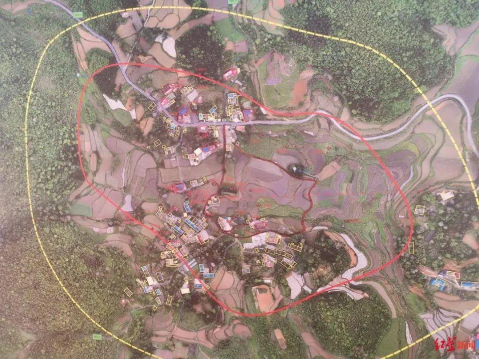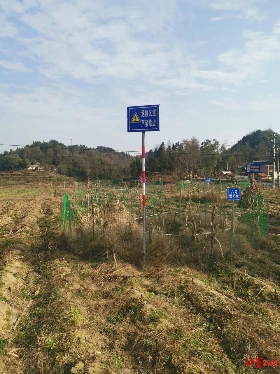 老组长陈定志称,一个村子,突然有那么多的“洞”冒出来,他们还是感到担忧和害怕。红星新闻记者在村内走访看到,这些洞目前全部进行了标注,且建有围栏遮挡,目前已标注了“一号塌陷坑”到“三十一号塌陷坑”。村内部分区域设置警示牌,提醒村民和外来者注意危险或不要靠近逗留。此外,村里还设置了三条撤离路线,醒目的路线标识方便村民在遇到突发意外时,往村庄附近的三个方向转移。