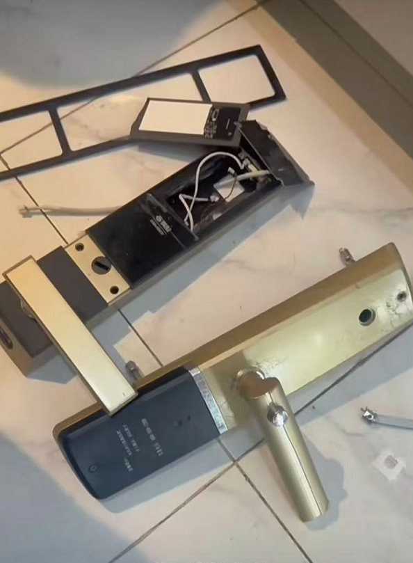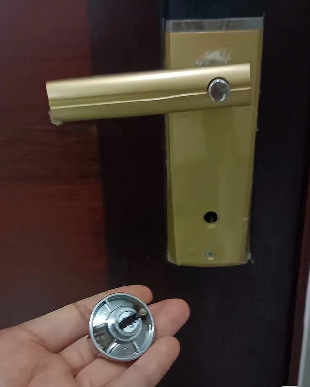 小张表示,工人撬完锁,民宿老板和警方都赶到现场,民宿老板否认门锁有问题,小张感到很无语,因为她们3个女生没那么大力气把密码锁拔了。“我们出不去的原因就是这个锁孔断了,断掉的是小锁,那个锁帽掉下来了,门锁的把手是正常的。”