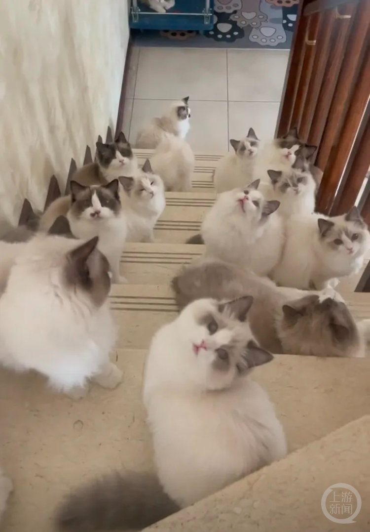 近日,上游新闻记者联系上了小周。他表示,自己34岁,目前从事文创产业方面的工作,因为太想念自己因病去世的布偶猫“大头”。一开始是购买布偶猫,后来他又收养了很多别人遗弃的布偶猫,从30多只到目前共收养了134只布偶猫,为了一视同仁,都称呼为“咪咪”。