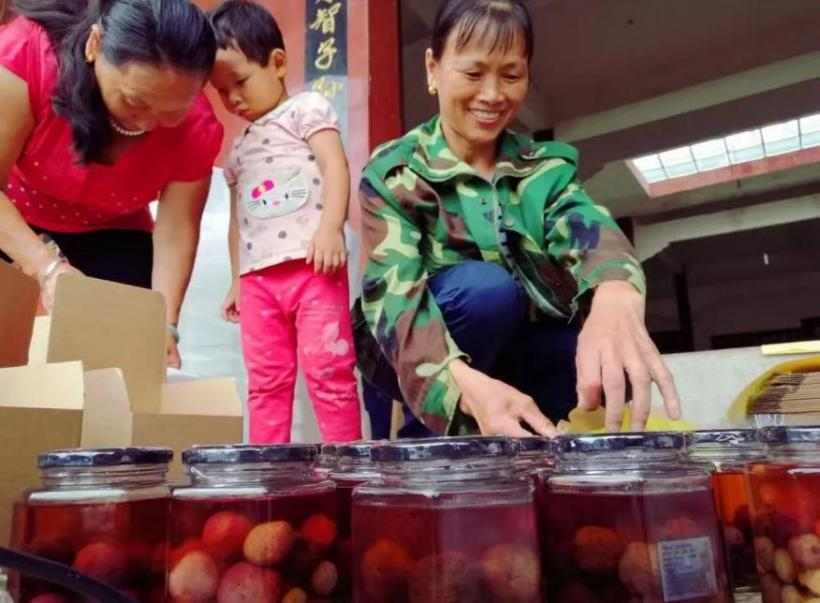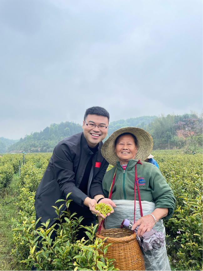 谢淘(左)和茶农在金鸡布黄茶种植基地