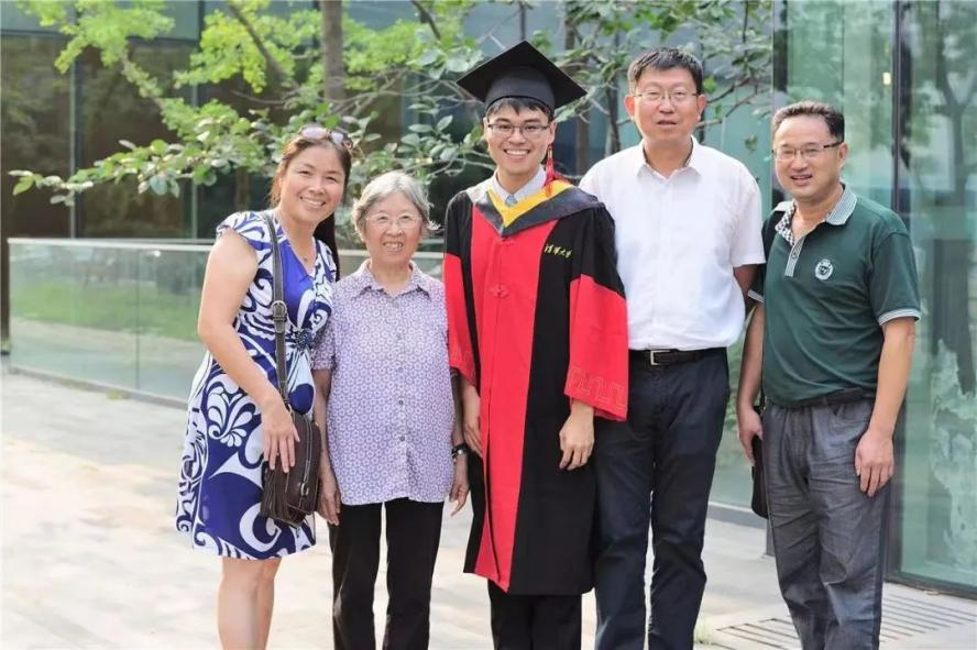 博士毕业时,谢淘一家人与导师钱易院士(左二)的合影