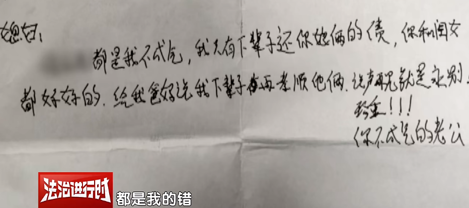 这是赵某写给妻子王女士的一封遗书,遗书中,赵某不仅交代了家里的水电气情况,还表达了对妻子、孩子、父母的亏欠。