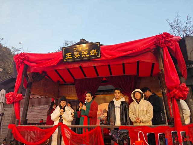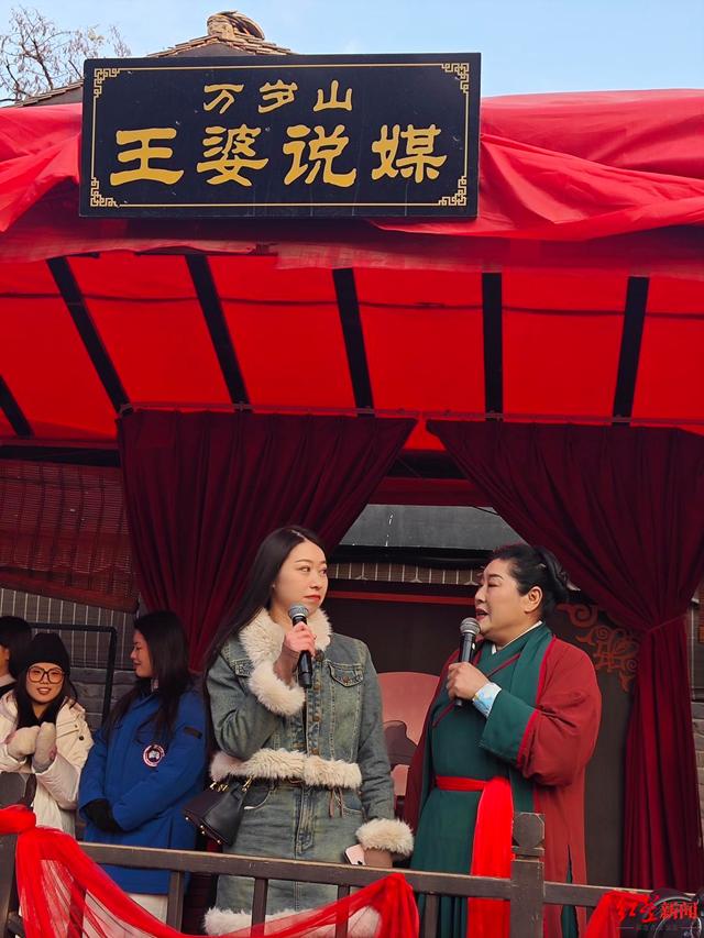 ▲万岁山景区内观看“王婆说媒”的观众
