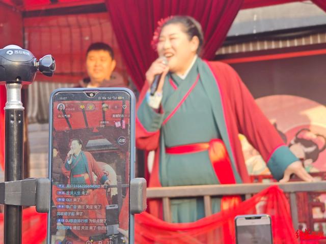 ▲赵梅在舞台上表演时台下的直播