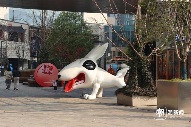 2017年商场开业时,两只牛头梗就矗立在此。“过去五年间,确实也收到过一些居民、消费者的反馈,很感谢大家对乐堤港的关注。”工作人员说,乐堤港计划对街区进行提升改造,过程中也会参考市民的意见,对小狗雕塑进行调整。