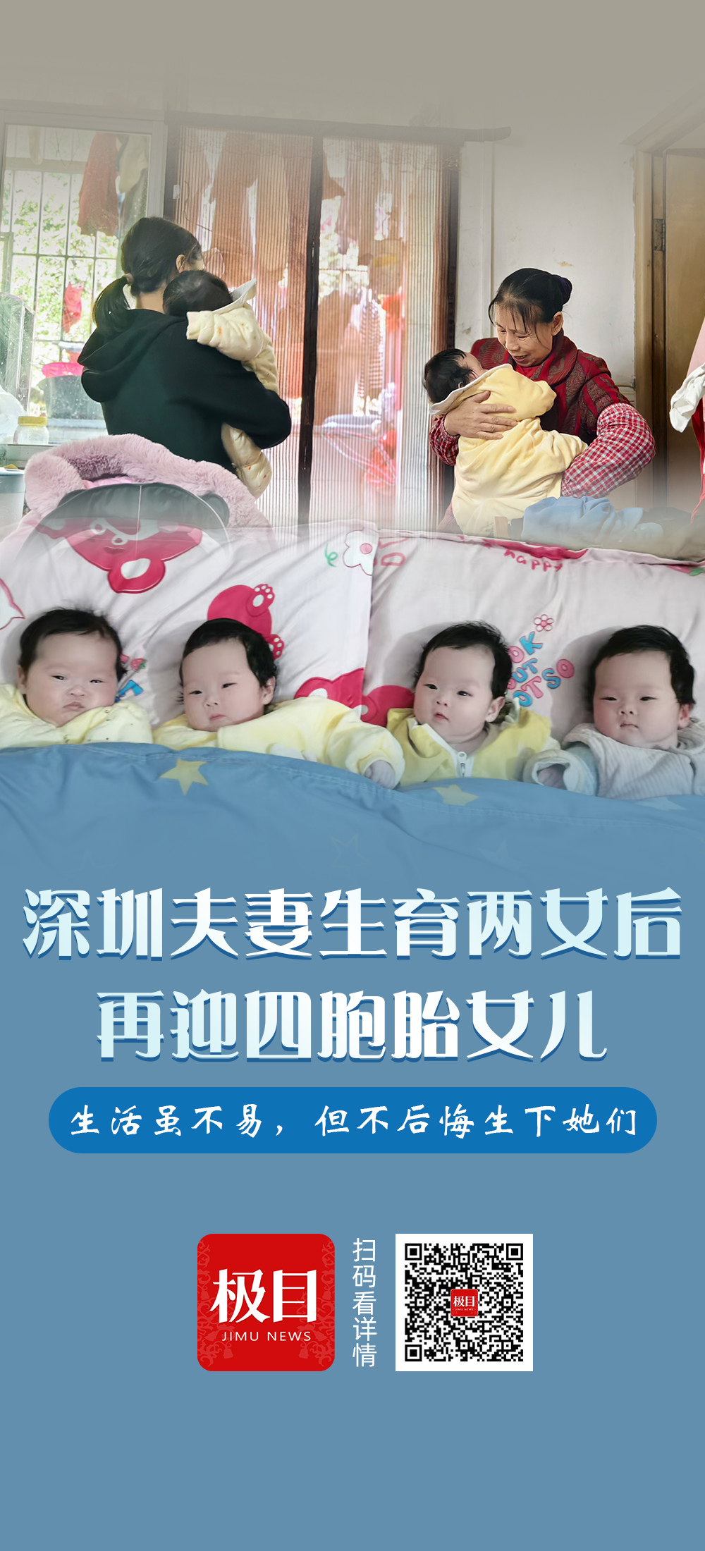 再有一个多月就是春节,李霞和陈小波还没确定要不要带孩子们回江西老家,他们有着自己的顾虑,“老家太冷了,怕孩子们受不了。”李霞告诉记者,深圳可能终究不会是他们的归宿,动辄几万块的房价,是那样的遥不可及。明年或后年,等孩子们稍大一点,李霞或许会带着孩子们离开生活了多年的深圳,回老家生活,虽有不舍但也无奈。说起四胞胎,李霞和陈小波依然记得乍听怀了四胞胎时的惊喜,他们说,生活虽不易,但不后悔当时下决心留下她们。