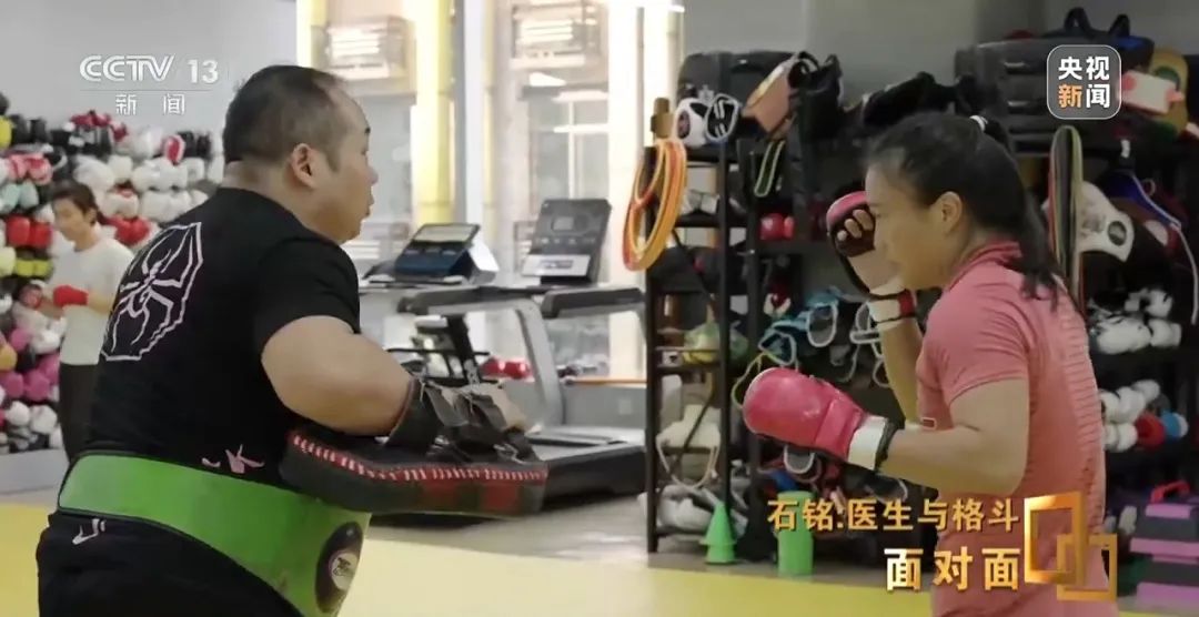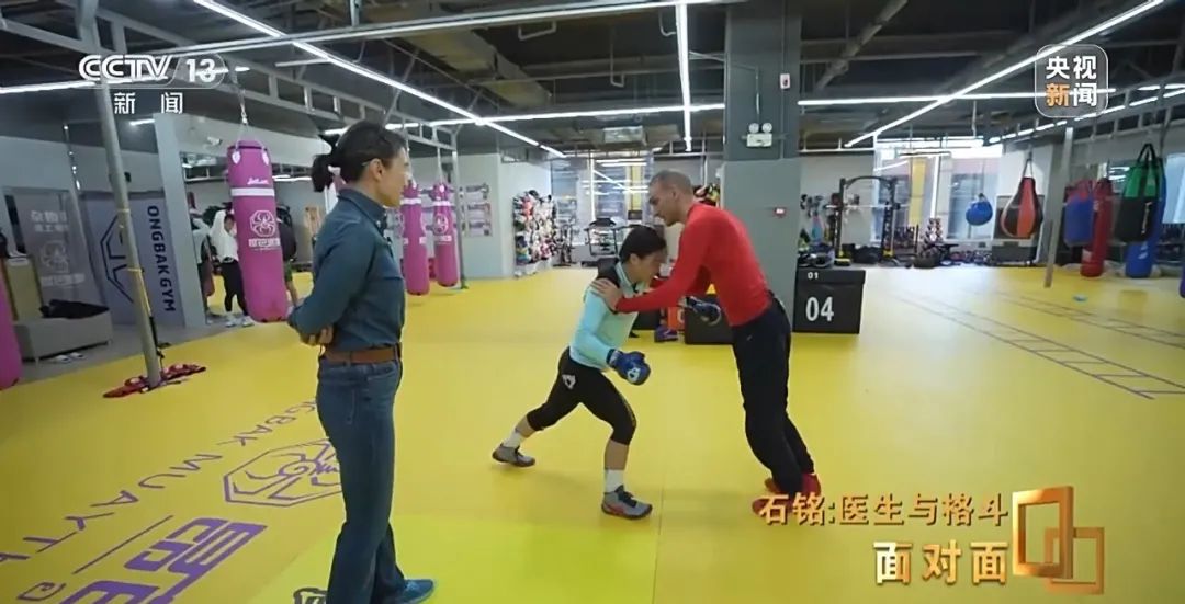 石铭:毕竟我的平时工作是以人的健康角度出发。一腿把对方踢晕了,作为一个医生不想给她太多的脑损伤,不想一直对着她的头打。