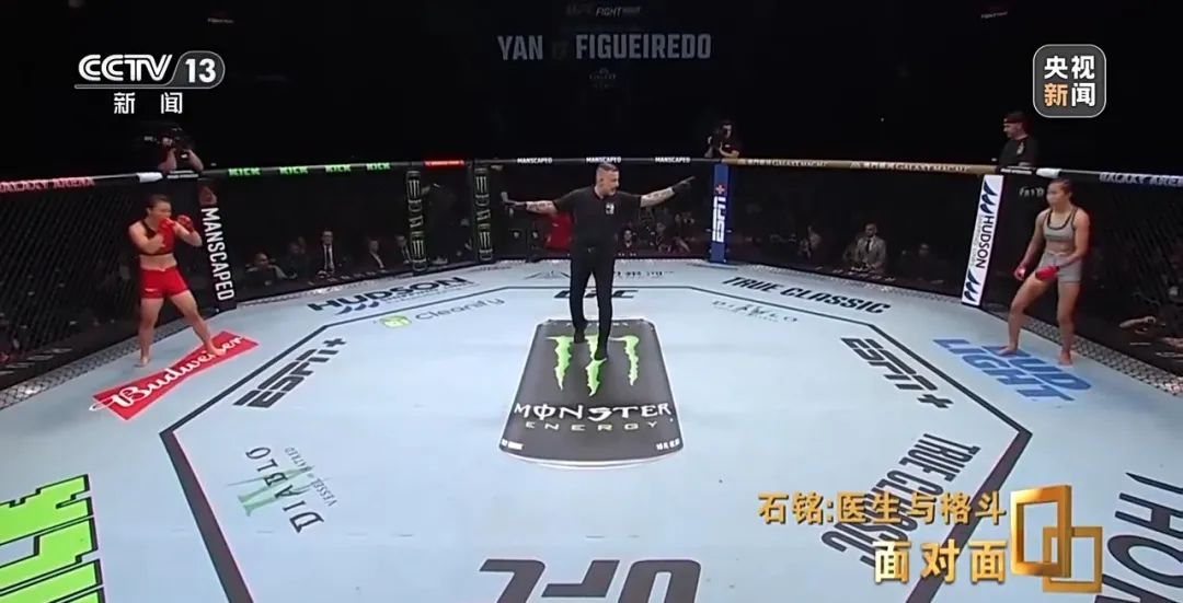 石铭:其实在赢下比赛,裁判终止比赛的时候,我开心了一秒。等我转过头看到她躺在地上的时候,我一下子从山顶掉到了谷底,还是挺难受的。因为作为一个医生,知道给她带来了多大的伤害,转过身看到她之后,我就没有感受到胜利的喜悦了。