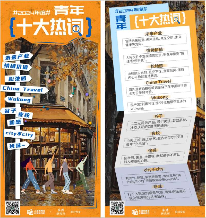 中国青年报客户端上海12月30日电(中青报·中青网记者王烨捷)今天,上海市青少年研究中心、澎湃研究所联合发布2024年度“青年十大热词”。经过候选词比选、热度指数计算、专家推选和网络投票,最终形成了十大热词:未来产业、情绪价值、松弛感、ChinaTravel、Wukong、谷子、夜校、偷感、city不city、班味。