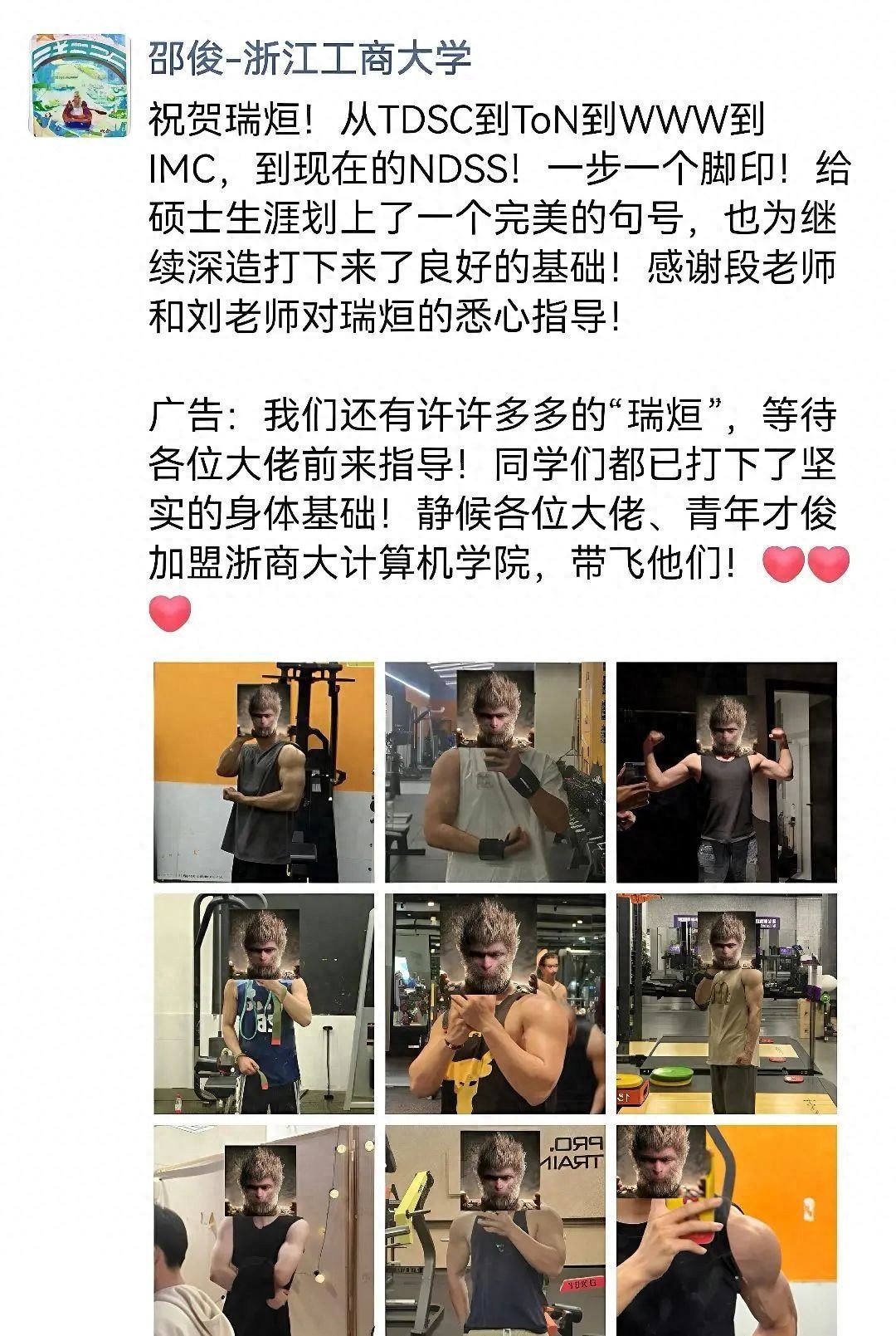邵俊的朋友圈,晒出多位研究生的“肌肉照”