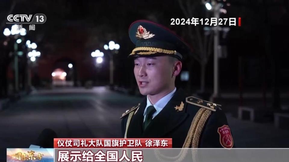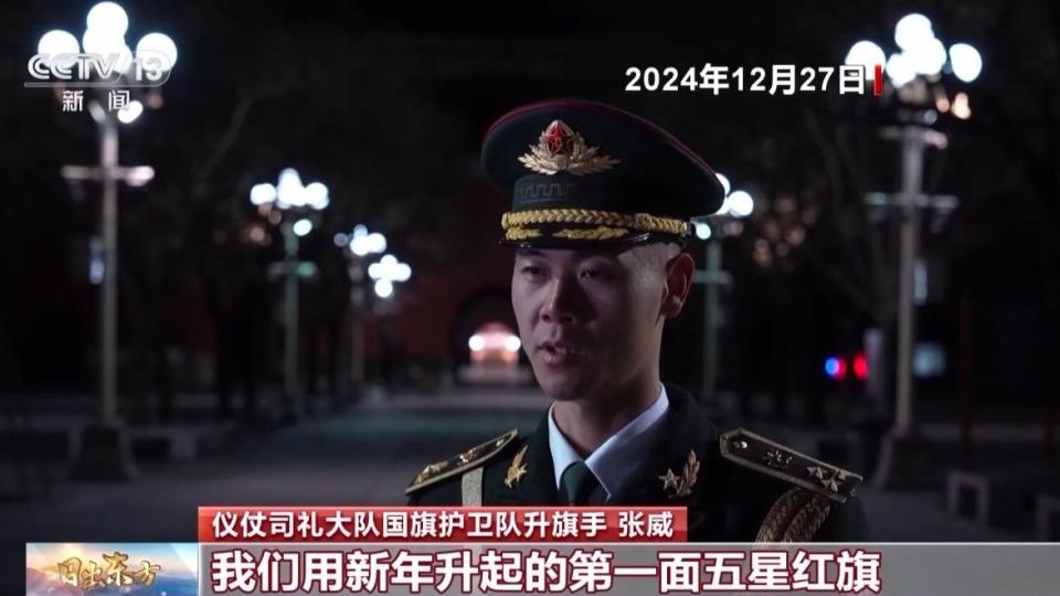 仪仗司礼大队国旗护卫队 徐泽东:新年第一天,万象更新,我们希望以更高的标准、更饱满的精神状态展示给全国人民。