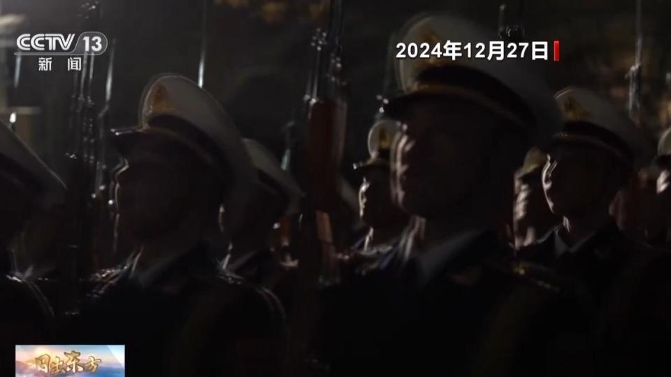总台记者 李伟:现在是北京时间晚上8:30,室外的气温可以说到了滴水成冰的状态,但此刻国旗护卫队仍然在进行针对元旦升旗仪式的强化训练。
