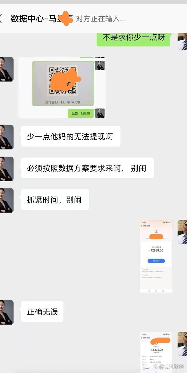 后来,开始支付5000元的活动,李先生按要求扫码支付5000元等退还时,对方称工作人员有一个错误把钱不小心冻结了,要投入4万元才能解锁。李先生开始有点担心,不肯再投入,反复沟通了多次一直没结果。