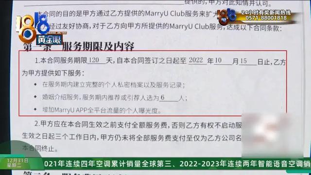 小李:里面签的是推荐10位,然后为期6个月,介绍成功返还40%,那个相当于作为你们那个恋爱基金。然后我说这2万有点多,他说我再还你个40%,这8000块钱后面肯定会返给你的。