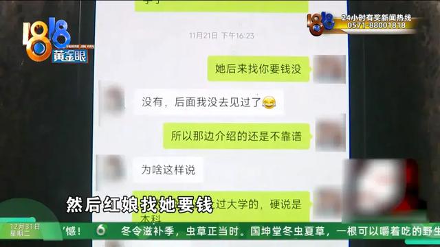 小李:我们两个就是没成,然后红娘找她要钱,她之前都没有交过钱,那我肯定有理由怀疑。我们都是这个付费会员,而且他们承诺的是女方也是付费会员。