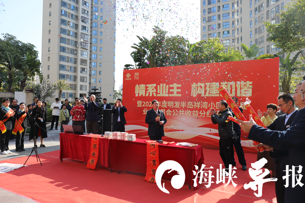 今天是新年第一天(2025年1月1日),厦门翔安金海街道浦西社区明发半岛祥湾小区成为了“别人家的小区”,业主们拿着自家房产证,排队领取公共收益分红金。