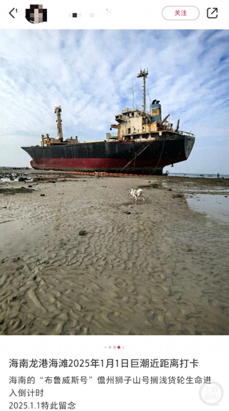 公开资料显示,受台风影响,这艘货轮搁浅已有3年多,近两年成为网红打卡地,被网友称为“海南儋州的布鲁威斯号”。近日,有网友在帖子中表示“海南龙港海滩2025年1月1日近距离打卡,海南布鲁威斯号搁浅货轮生命进入倒计时”,评论区有网友留言询问“要拆掉了吗”,发帖网友回复表示“正在进行中”。