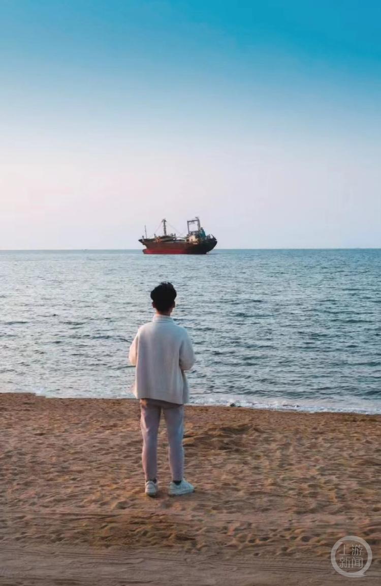 儋州搁浅货轮走红后,不少网友专程来打卡合影。 网络图