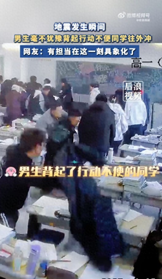 地震瞬间男生背起行动不便同学冲出教室,网友:有担当在这一刻具象化了