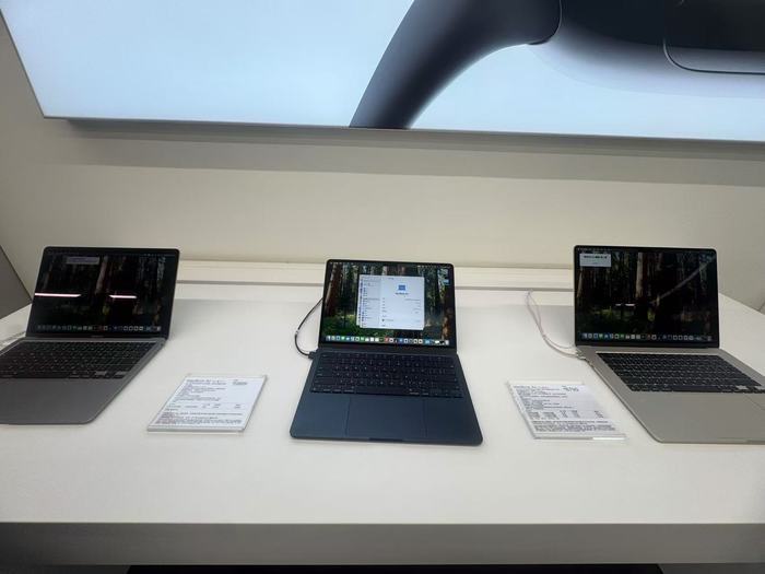一款M1芯片8G内存256存储容量的MacBookAir笔记本电脑,店内标注起售价格为5999元,工作人员向记者介绍,目前该笔记本电脑价格可直降1000元。同日,记者同时走访了多家Apple授权专营店,手机、平板、笔记本电脑等产品有不同幅度优惠活动,部分产品还可享受以旧换新10%的补贴。
