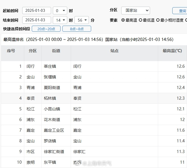 不过随着今天白天阳光登场,雾气消散,温度逐渐上升,截至今天15时,全市最高气温在11~13℃之间,闵行站最高12.6℃,崇明站11℃整。