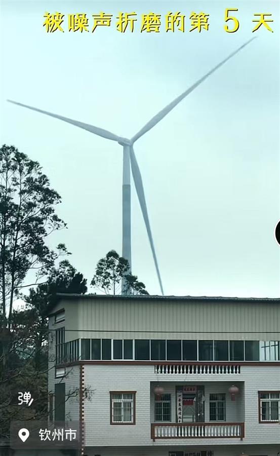 极目新闻记者注意到,从11月6日开始,一位网友陆续发布十多条视频,称广西钦州久隆镇那河村有风力发电机距离村子太近,仅仅四百多米。影响村民日常生活。12月30日,该网友发布的视频称,村民已被风机噪音折磨了6天,“一些低频噪音会穿过窗户进入室内,这种持续不断的低频噪音听着很难受”。视频中还有一位“村民”出镜称,“晚上很吵,睡不着”。