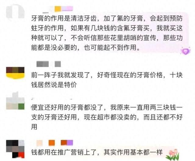 不久前,#10元以下的牙膏消失了##牙膏为何越来越贵#等相关话题登上热搜,迅速在消费者群体中引发热议,放眼超市货架,低价牙膏难寻已成为事实。不少网友表示,深有同感!