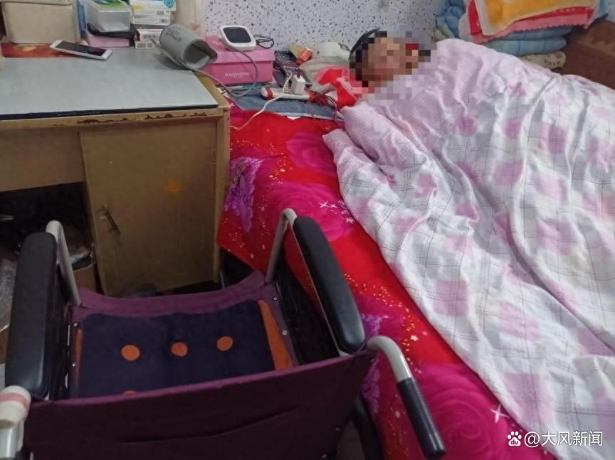 张先生如今仍四肢无力,需妻子全程护理,如需出行,也只能靠轮椅