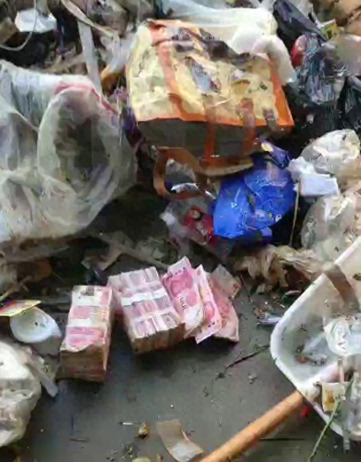 几个人又重新翻找,最终把剩下的13万现金从垃圾堆里找了出来。