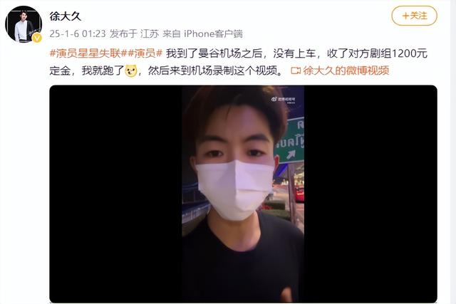 徐大久表示,自己的机票在出海关时被退掉了,剧组说是助手不小心退的,又重新给我买了一张一万多的回国机票。徐大久称自己没有进组拍摄,提醒收到泰国拍戏的通告一定要谨防上当受骗。