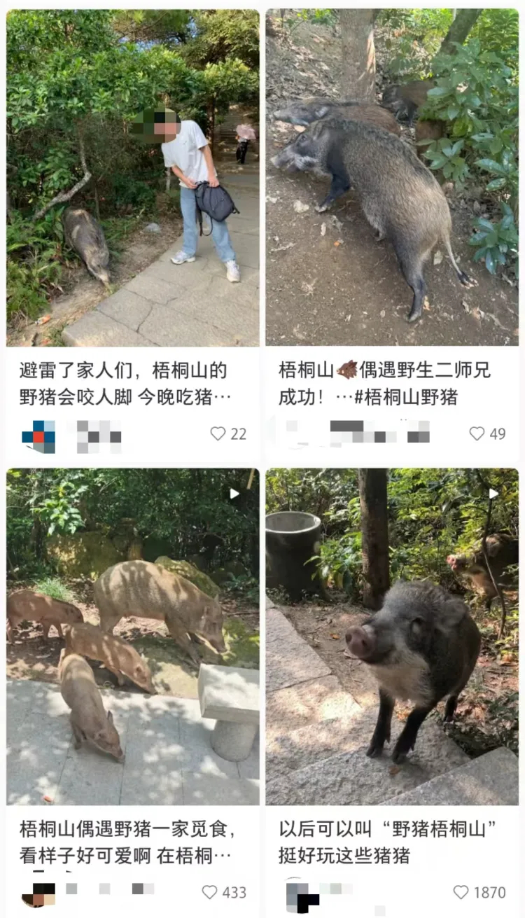 深圳“投喂野猪活动”此前已走红网络,不少市民都在社交媒体上晒出在梧桐山偶遇野猪的视频和图片,并称这些野猪已经是“职业乞讨”——为了讨吃变得慈眉善目,学会点头哈腰摇尾乞讨,“它们似乎明白,哄好游客才是出路。”