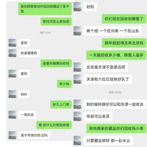 记者在调查中发现,直播间销售假古董之外,还衍生出了新骗局——一些主播通过微信添加老人,号称交880元,就可以上门回收这些商品,价格比市面价高20%。