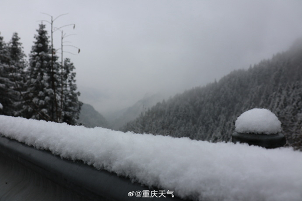 重庆酉阳昨夜到今天现降雪。(来源:@重庆天气)