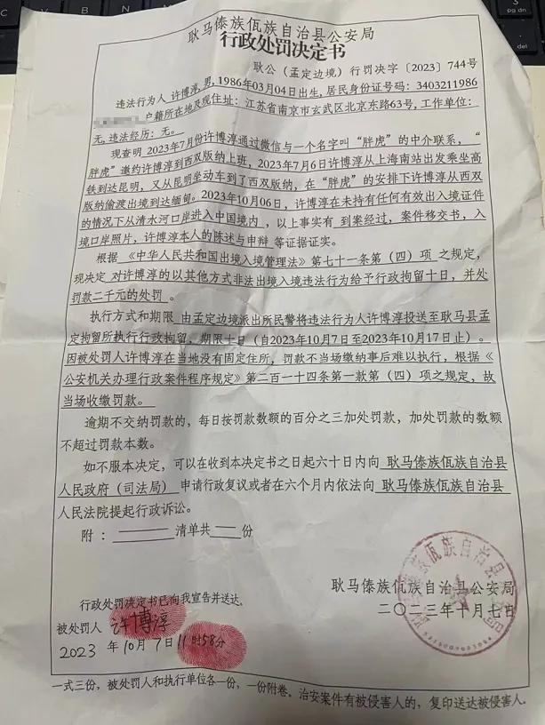 许博淳的家人接到消息立即在国内报警。最终,家人通过缅甸当地的蛇头和华人商会将许博淳救回。“整个救援过程花费了大概100多万元,其中给到诈骗公司的现金是62万元,其他费用包括找关系、蛇头费等。”