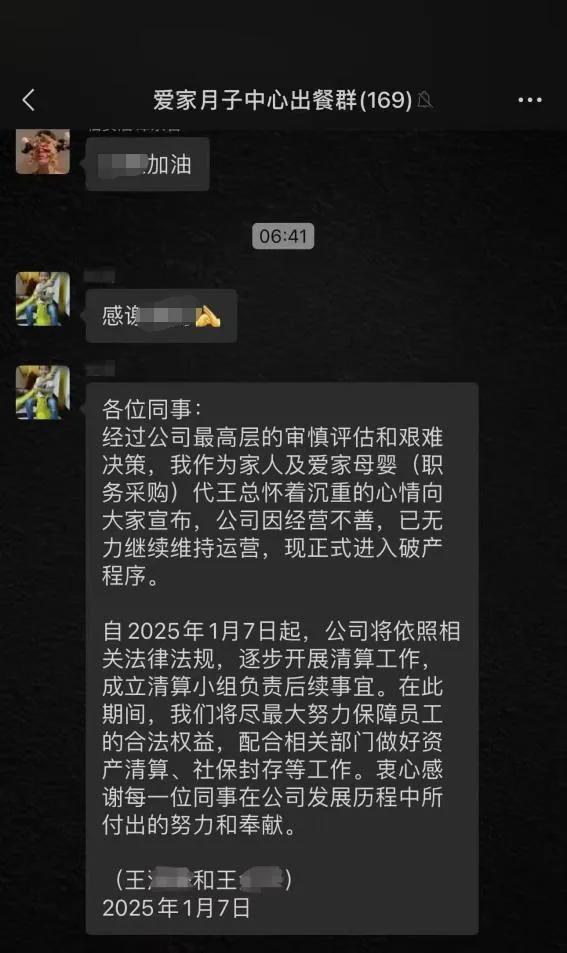 1月7日,多位消费者称爱家月子中心“跑路”、爱家月子中心“爆雷”等话题在社交平台迅速发酵。