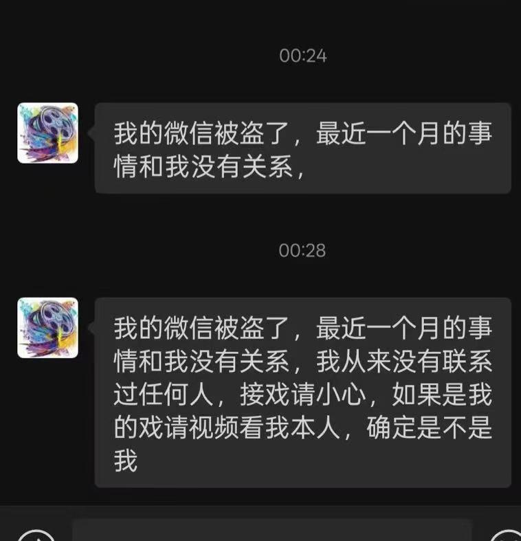 值得注意的是,演员王星一事引发关注后,“颜十六”曾自称其微信账号被盗。相关聊天记录显示,“颜十六”在回复询问称,“我的微信被盗了,最近一个月的事情和我没有关系,我从来没有联系过任何人,接戏请小心,如果是我的戏,请确定是不是我。”