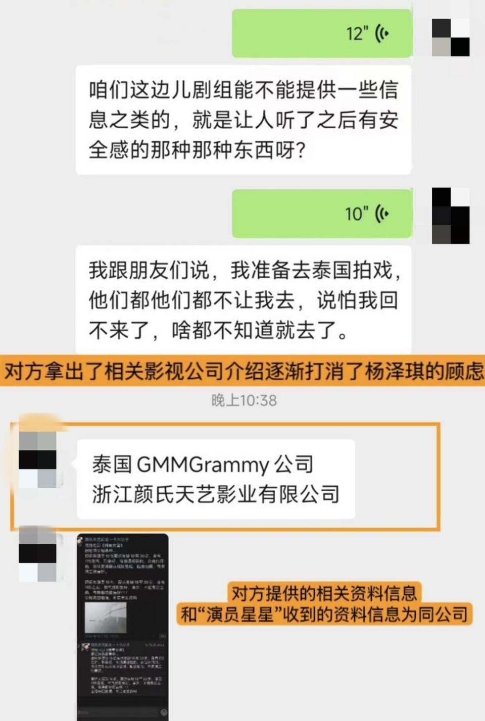 一名男演员看到此消息后联系了“颜十六”。据其介绍,“颜十六”再次向他发送上述通告,称“阵容保密不便透露,进组时间3个月,泰国跟组男数名,跟组女已满,周期3个月”。