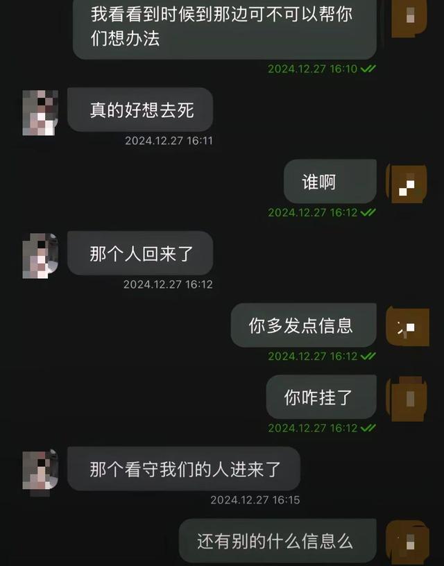 聊天记录显示,许好宁和林美玲对于自己的处境非常不乐观,多次提到:“我现在真的好绝望”“我真的好想去死”“那个看守我们的人进来了”等内容。