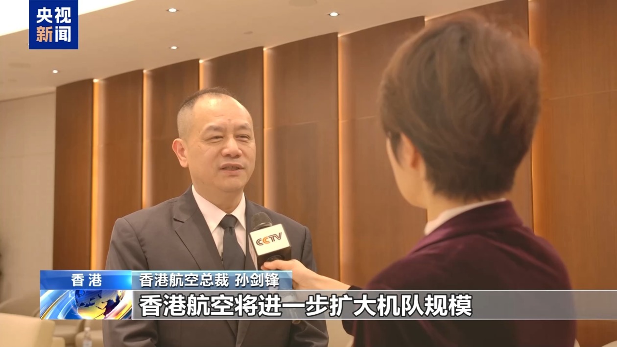 香港航空总裁 孙剑锋:我们香港航空充分发挥背靠祖国联通世界的优势,在新的一年里,香港航空将进一步扩大机队规模、提升运力。
