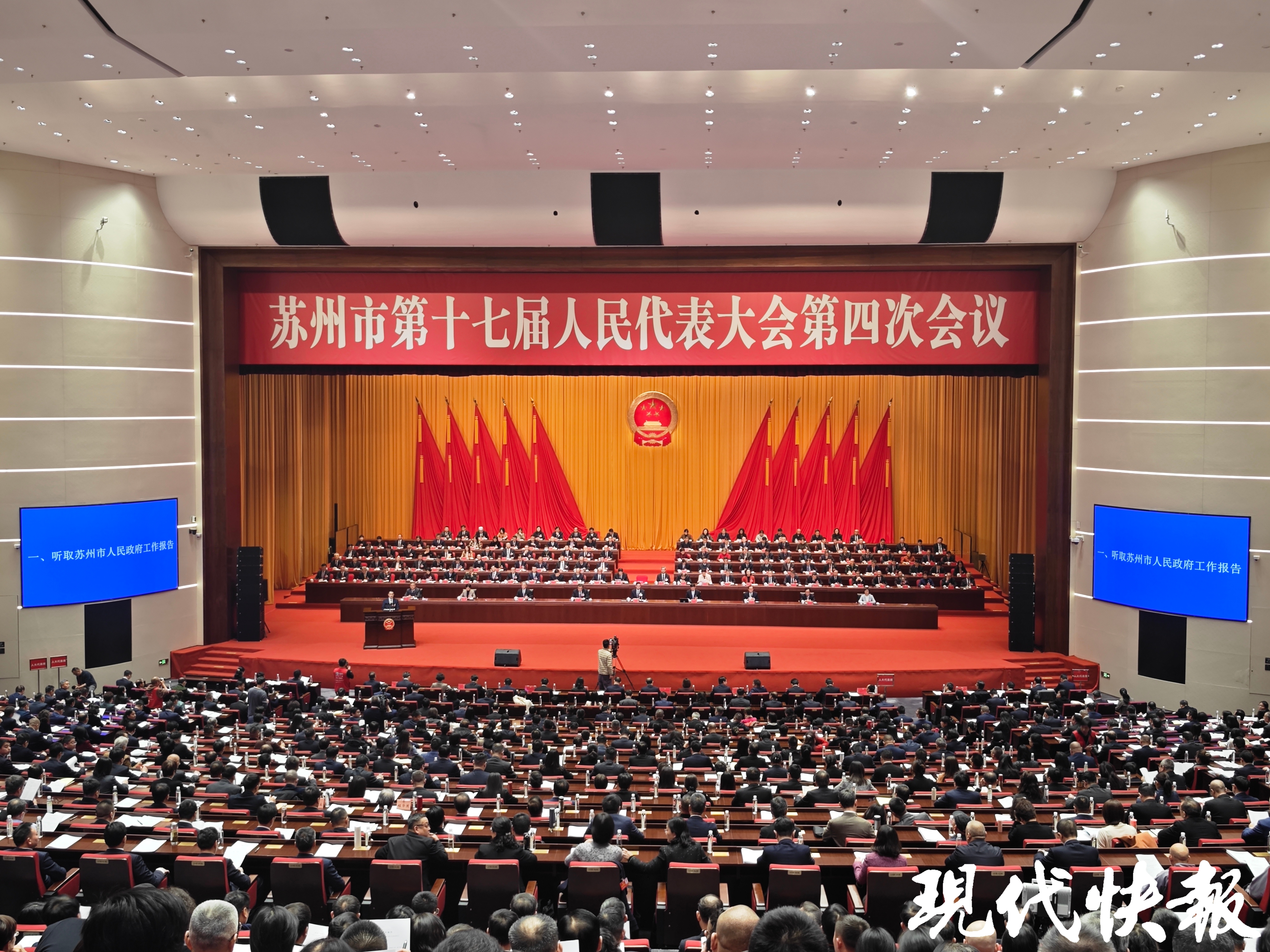 现代快报讯(记者高达文/摄)突出可感可及,用心用情解决民生关切。1月12日下午,苏州市十七届人大四次会议开幕,市长吴庆文向大会作政府工作报告。现代快报记者注意到,在2025年主要任务中,不少工作都关乎民生。苏州将深入贯彻以人民为中心的发展思想,精心办好民生实事项目,努力让发展实绩更有“温度”、民生答卷更有“厚度”。