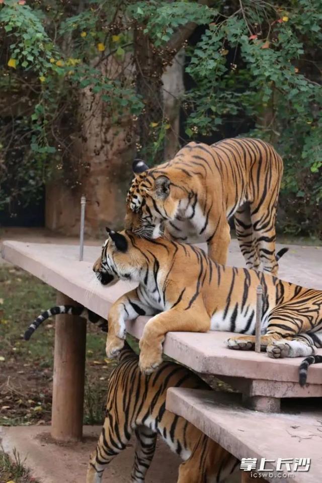 作为湖南省华南虎种源繁育基地,长沙生态动物园目前共有12只华南虎,并且都是英雄虎爸“马三”和英雄虎妈“小华”的后代。一位饲养员说,为了提高华南虎幼崽的成活率,在虎妈妈弃养幼崽的情况下,长沙生态动物园工作人员会对幼崽进行专业的人工育幼。2021年出生的华南虎“小马”,就是奶爸通过人工育幼悉心照顾长大。