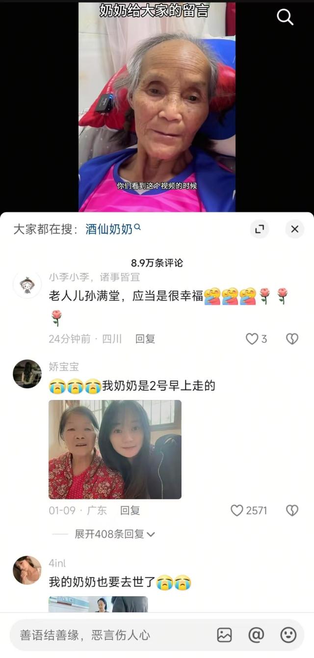 直到1月13日,这条视频的评论区还陆陆续续有网友前来为酒老太送行或哀悼。