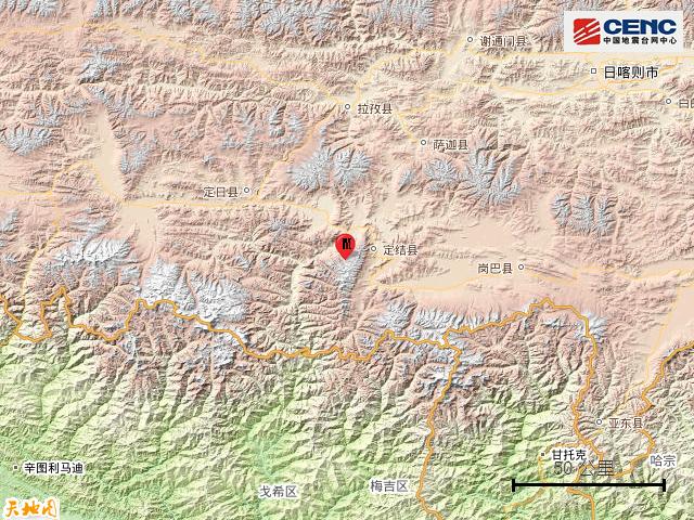 据中国地震台网正式测定,1月14日4时14分在西藏日喀则市定结县发生3.2级地震,震源深度10公里,震中位于北纬28.31度,东经87.63度。