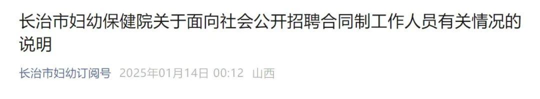 1月14日,涉事医院长治市妇幼保健院发布相关情况说明,详情如下: