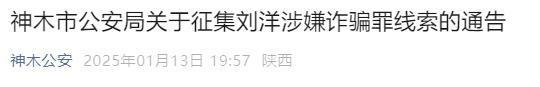 近期,神木市公安局刑侦大队正在侦办刘洋涉嫌诈骗罪一案。该案犯罪嫌疑人刘洋已被神木市公安局执行逮捕。
